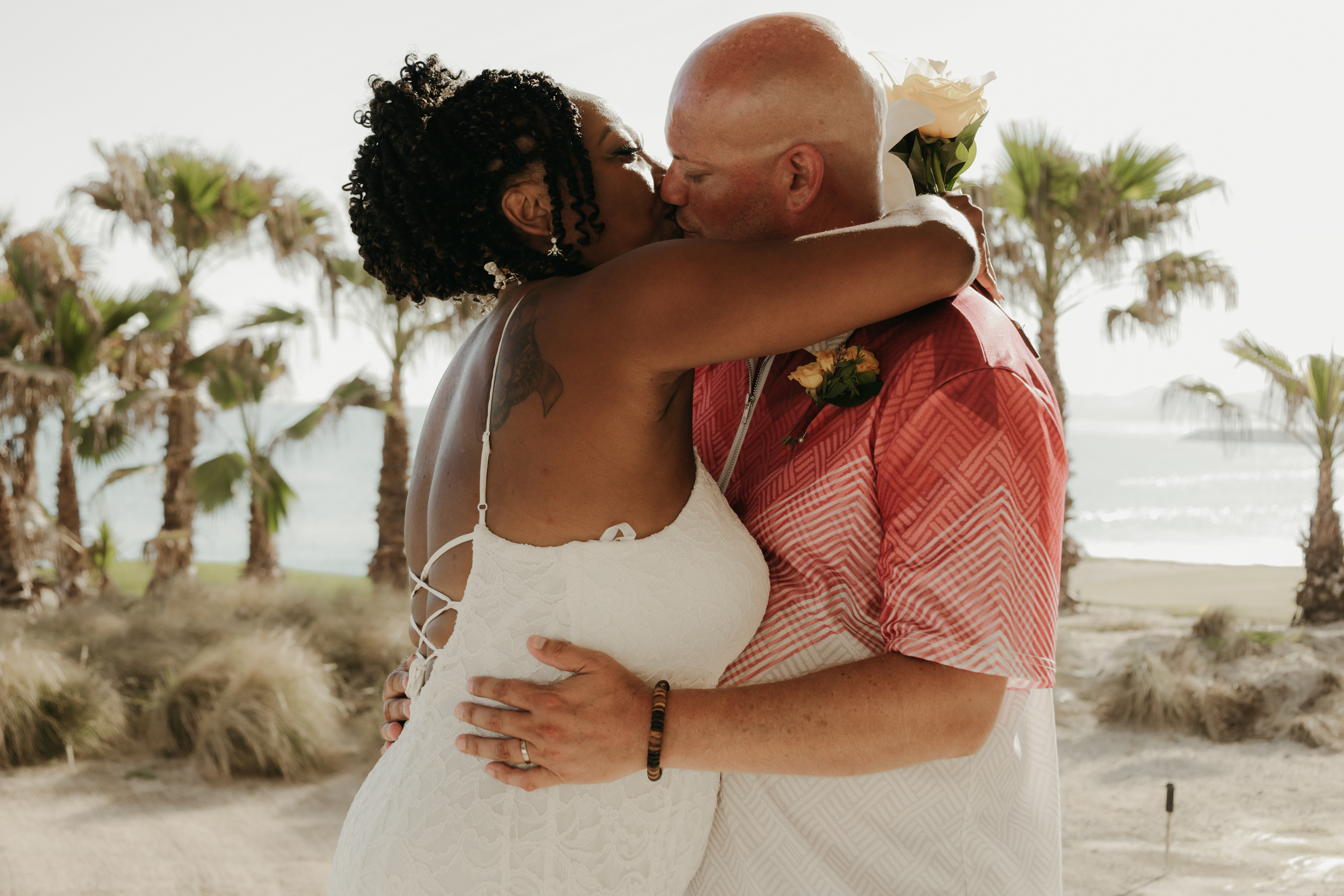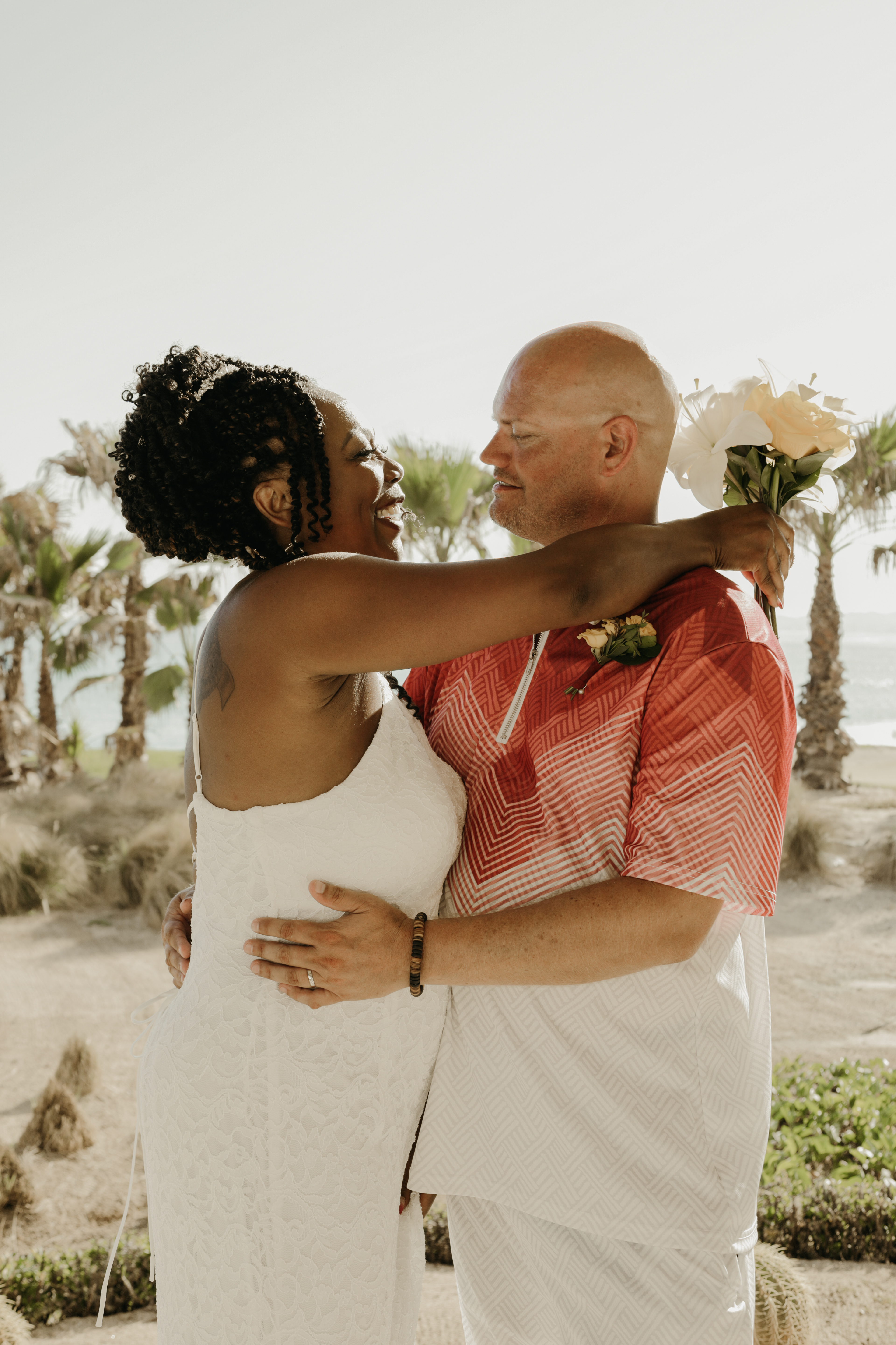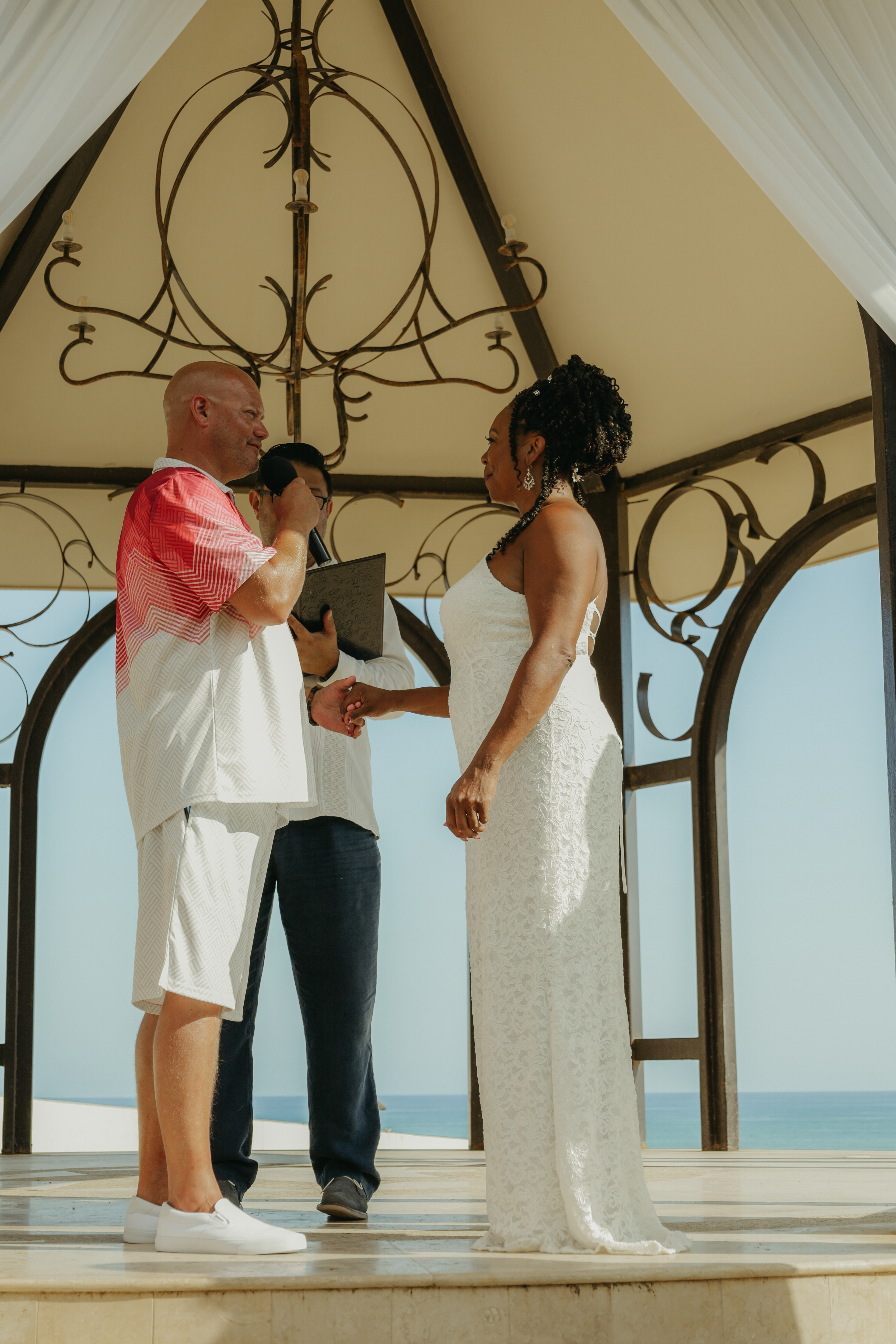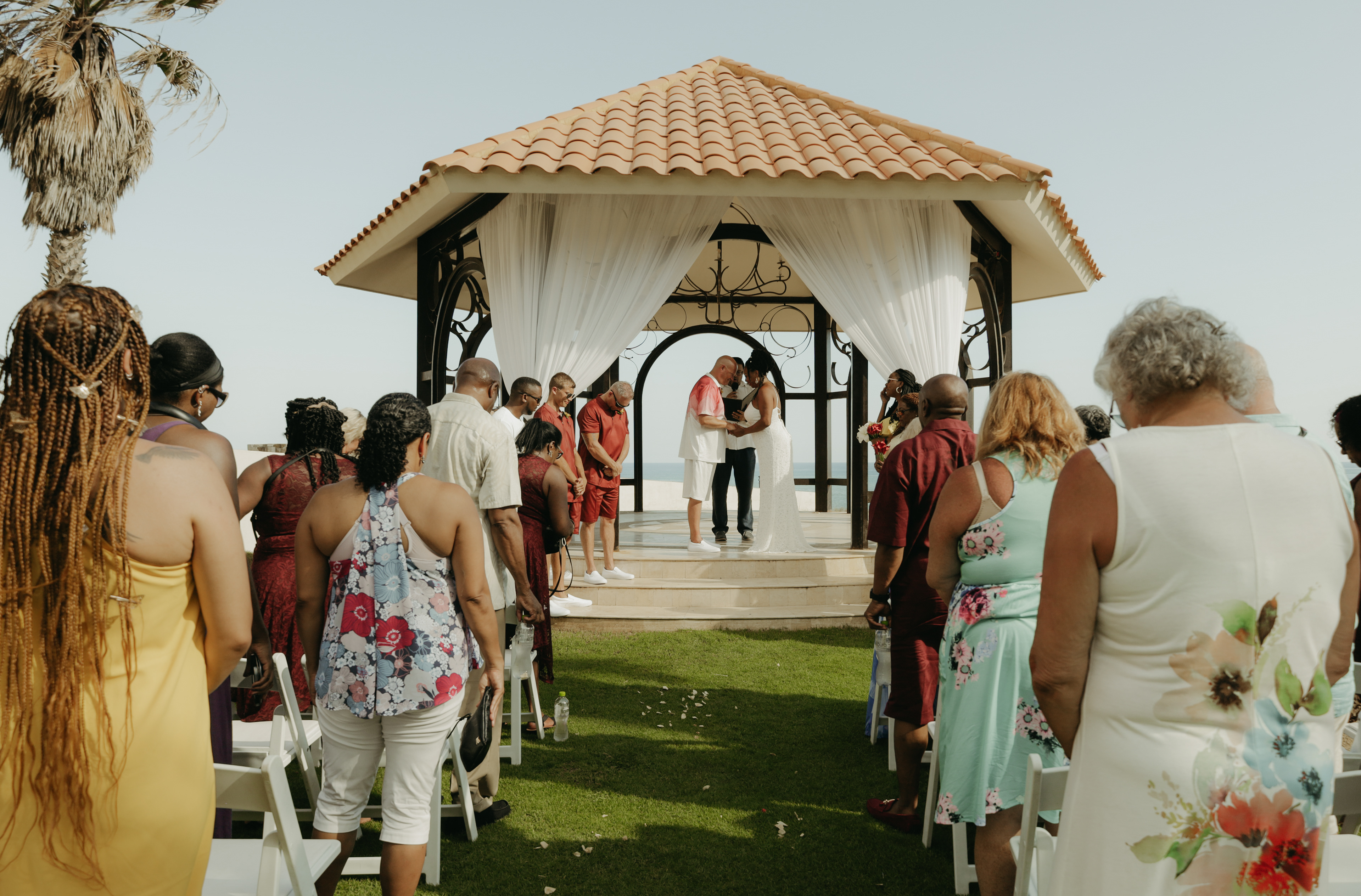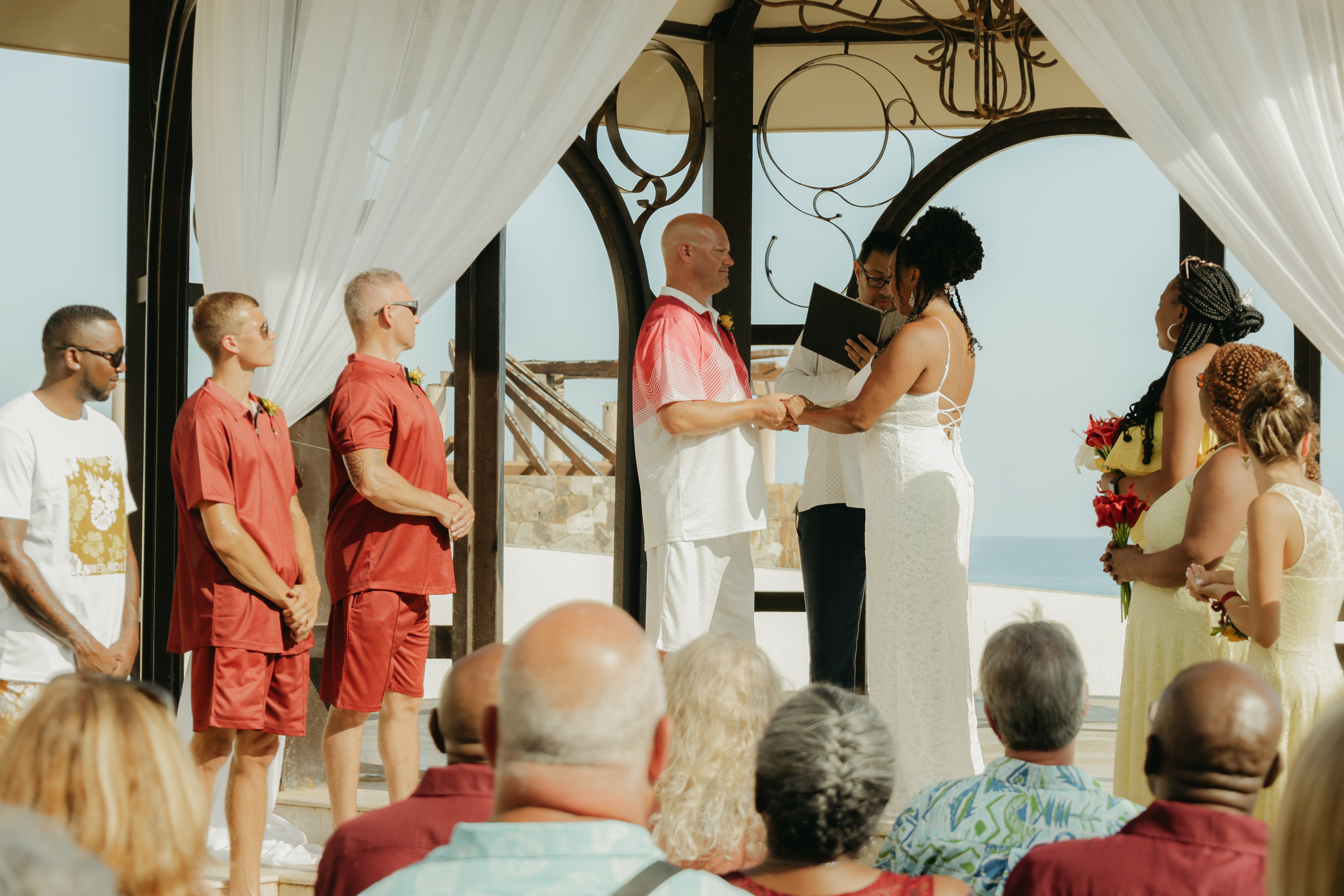 Loni and Jesse had their wedding on the east coast of Los Cabos. In a beautiful gazebo in front of the Sea of Cortez. Where their family and friends witnessed their engagement and love on a summer afternoon. Loni wore a beautiful dress with a nice back neckline, while Jesse was dressed in a fresh and very original suit. All the preparation took place at the Secrets Puerto Los Cabos resort.