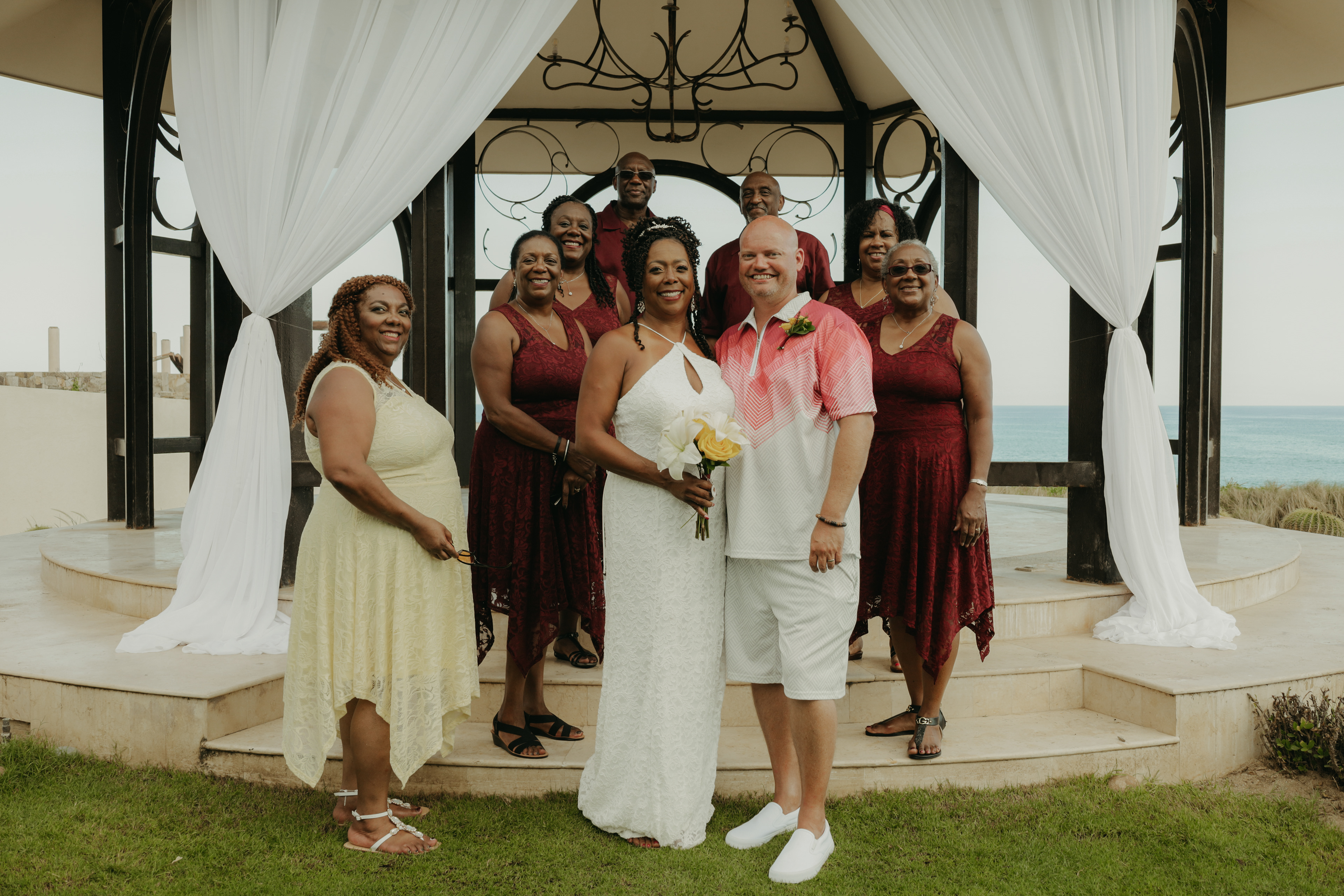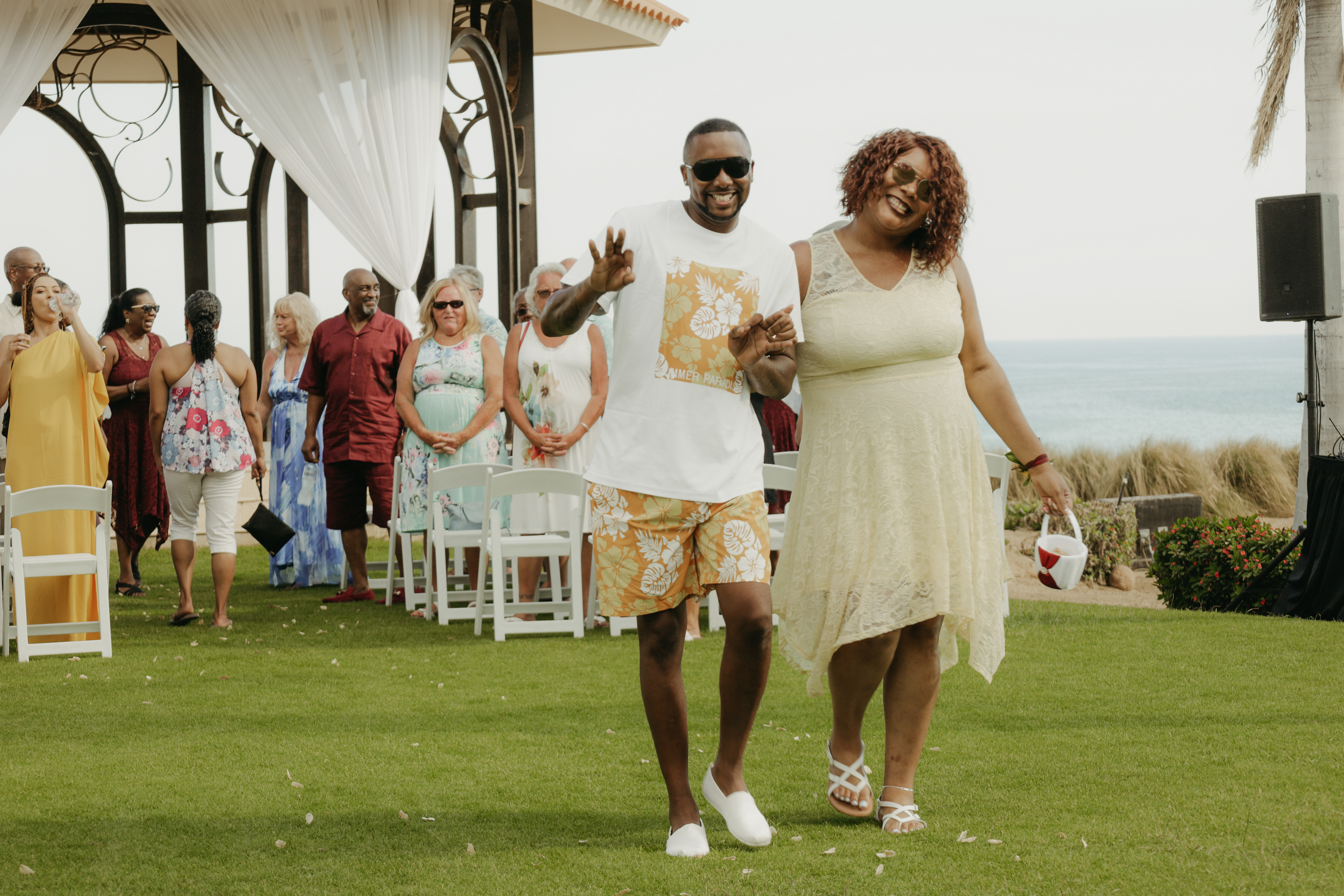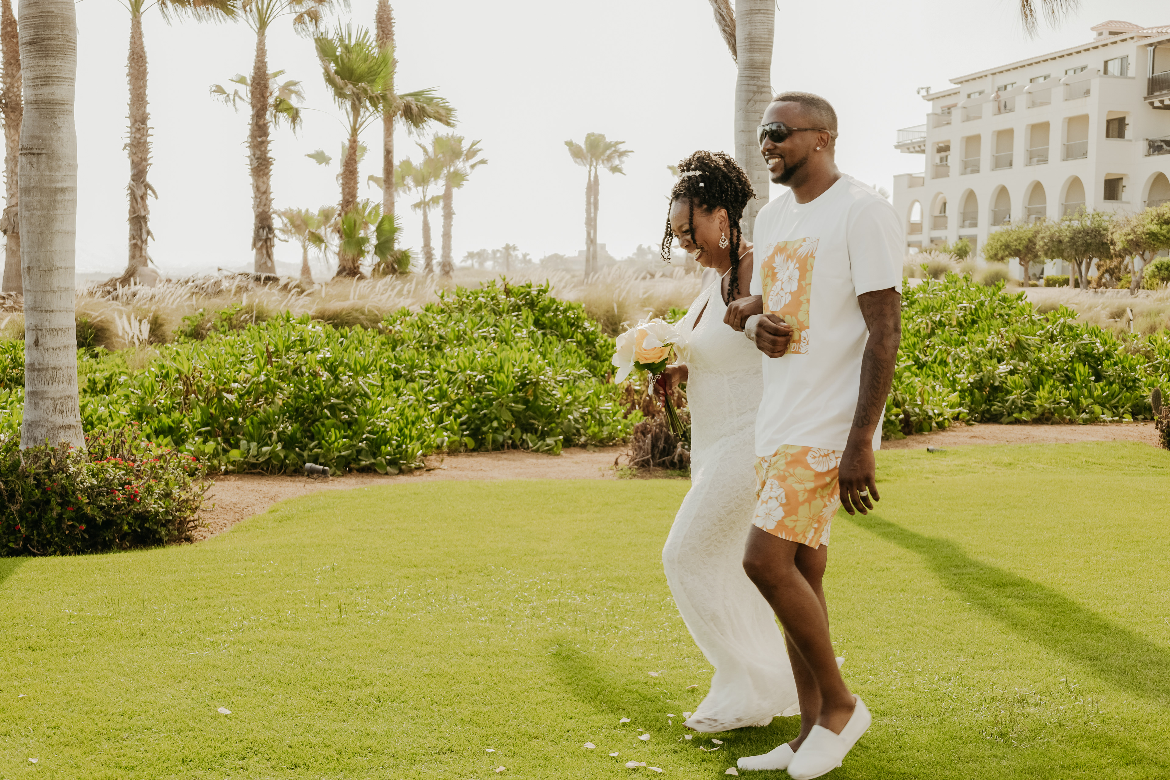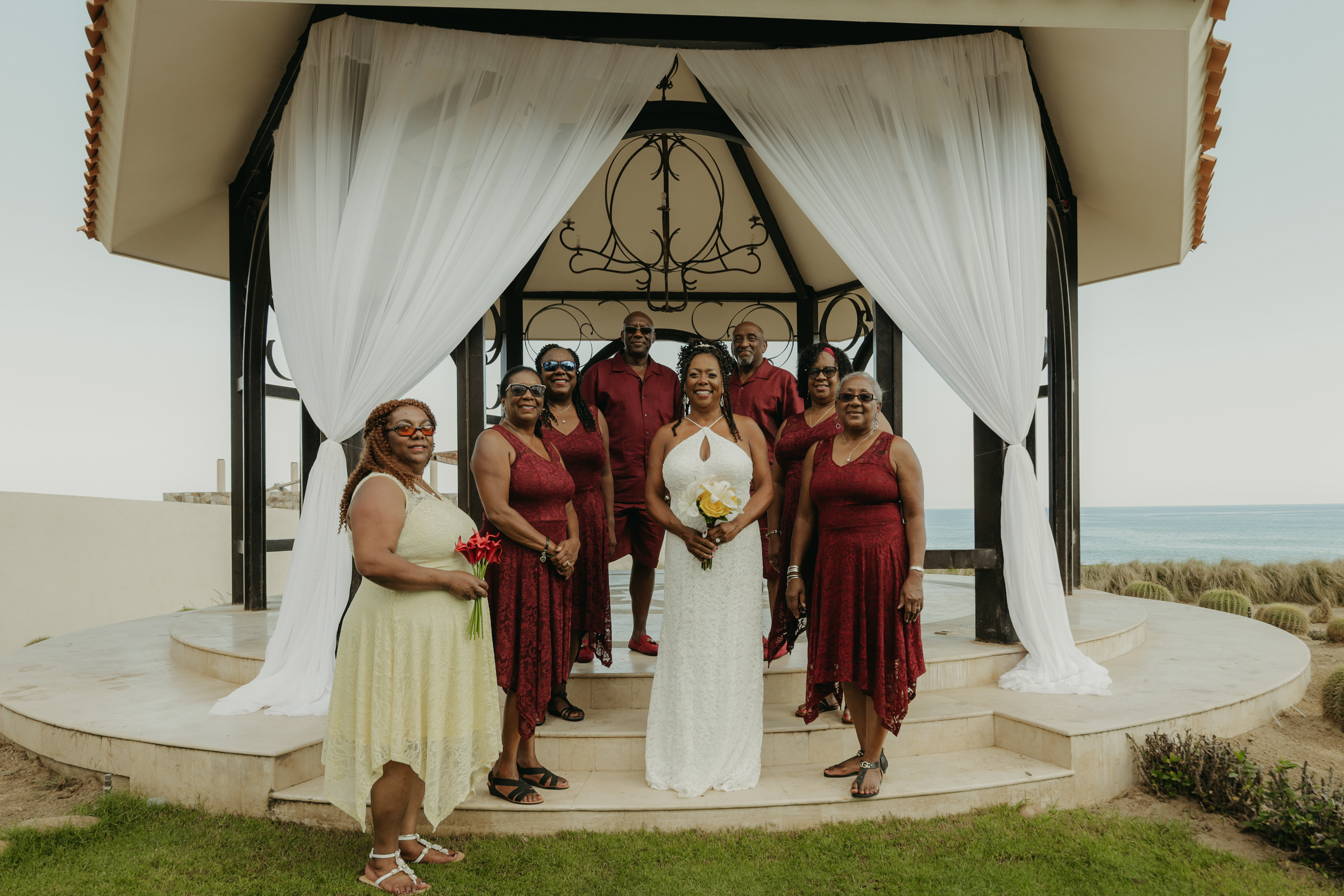 Loni and Jesse had their wedding on the east coast of Los Cabos. In a beautiful gazebo in front of the Sea of Cortez. Where their family and friends witnessed their engagement and love on a summer afternoon. Loni wore a beautiful dress with a nice back neckline, while Jesse was dressed in a fresh and very original suit. All the preparation took place at the Secrets Puerto Los Cabos resort.