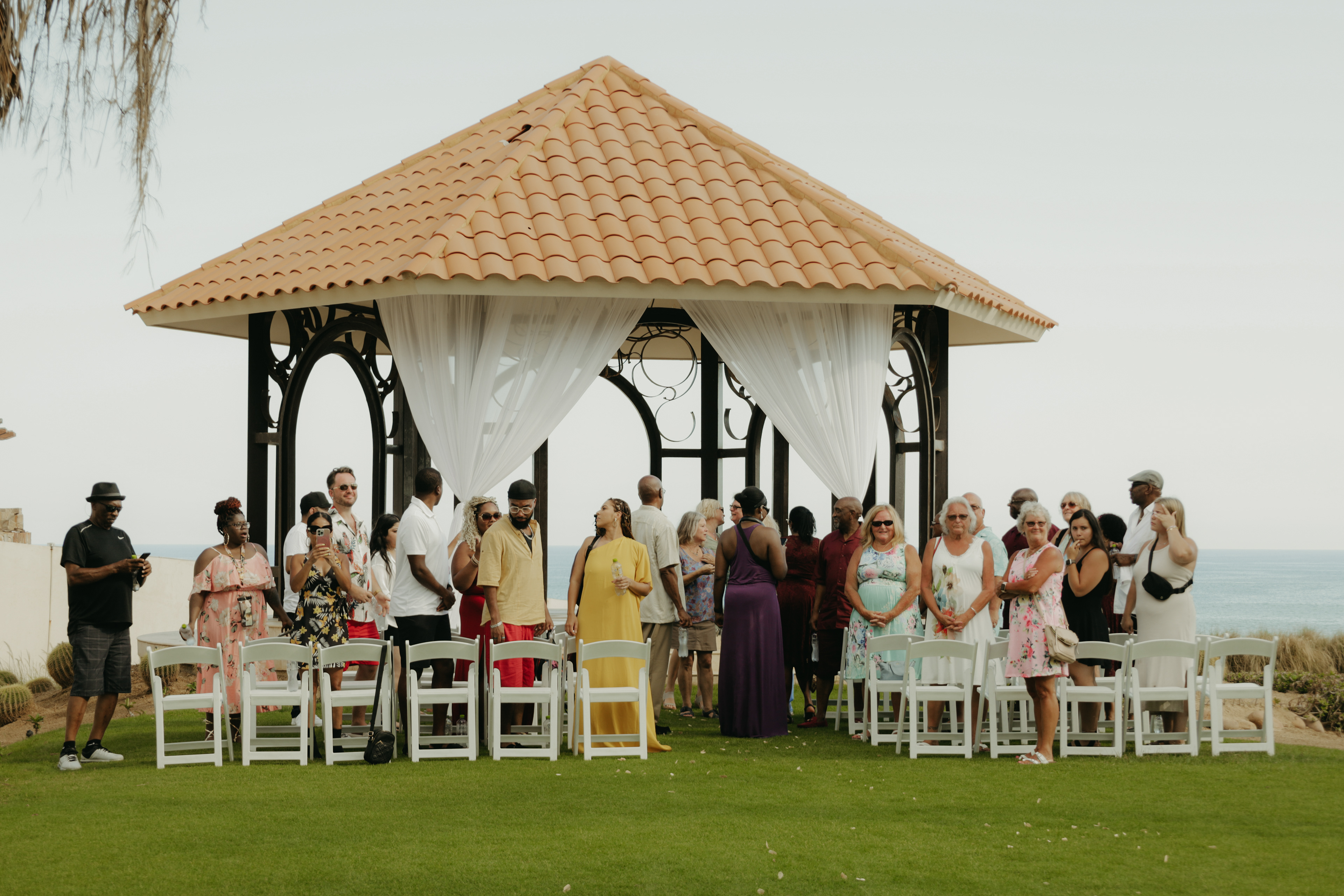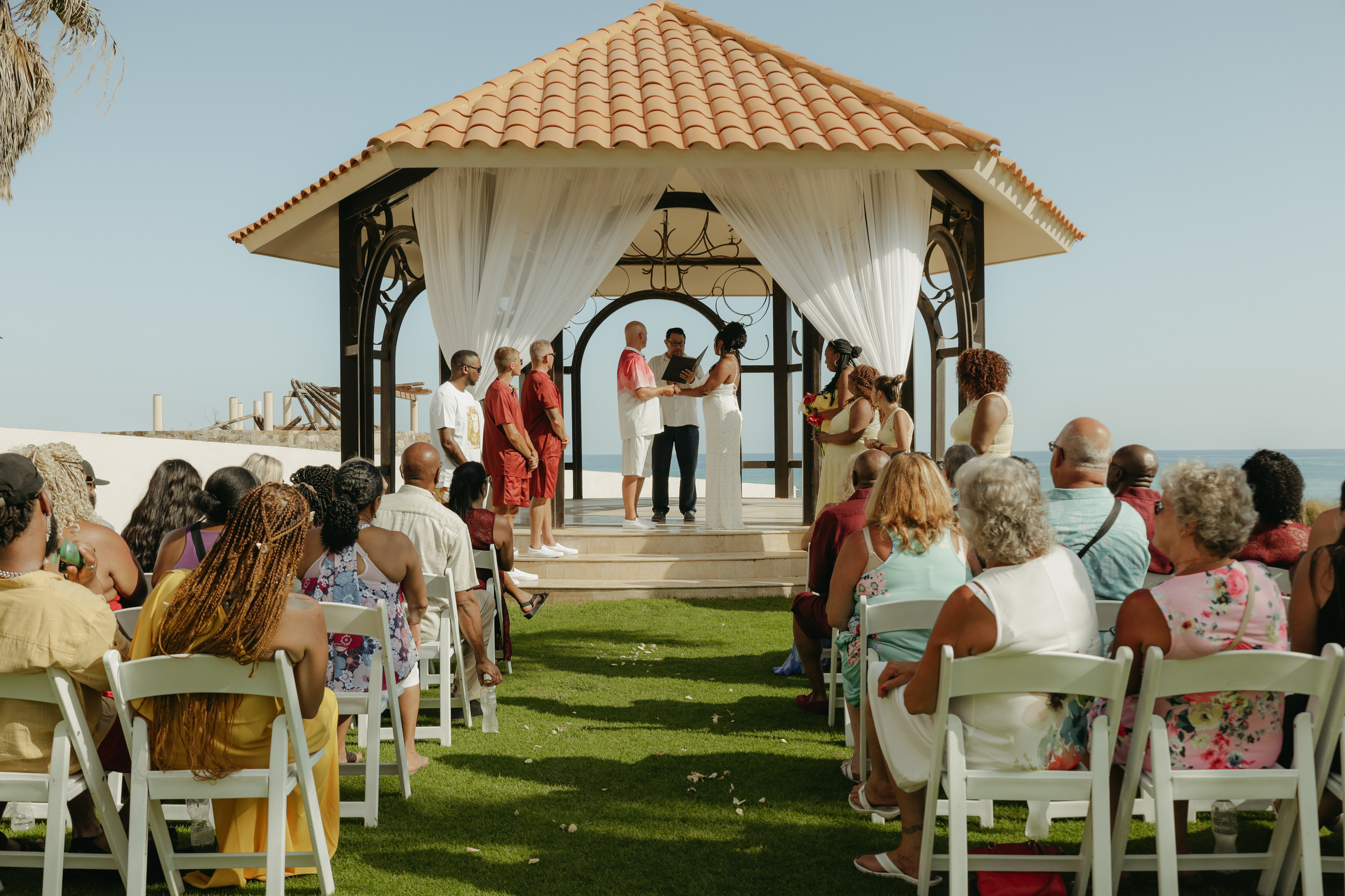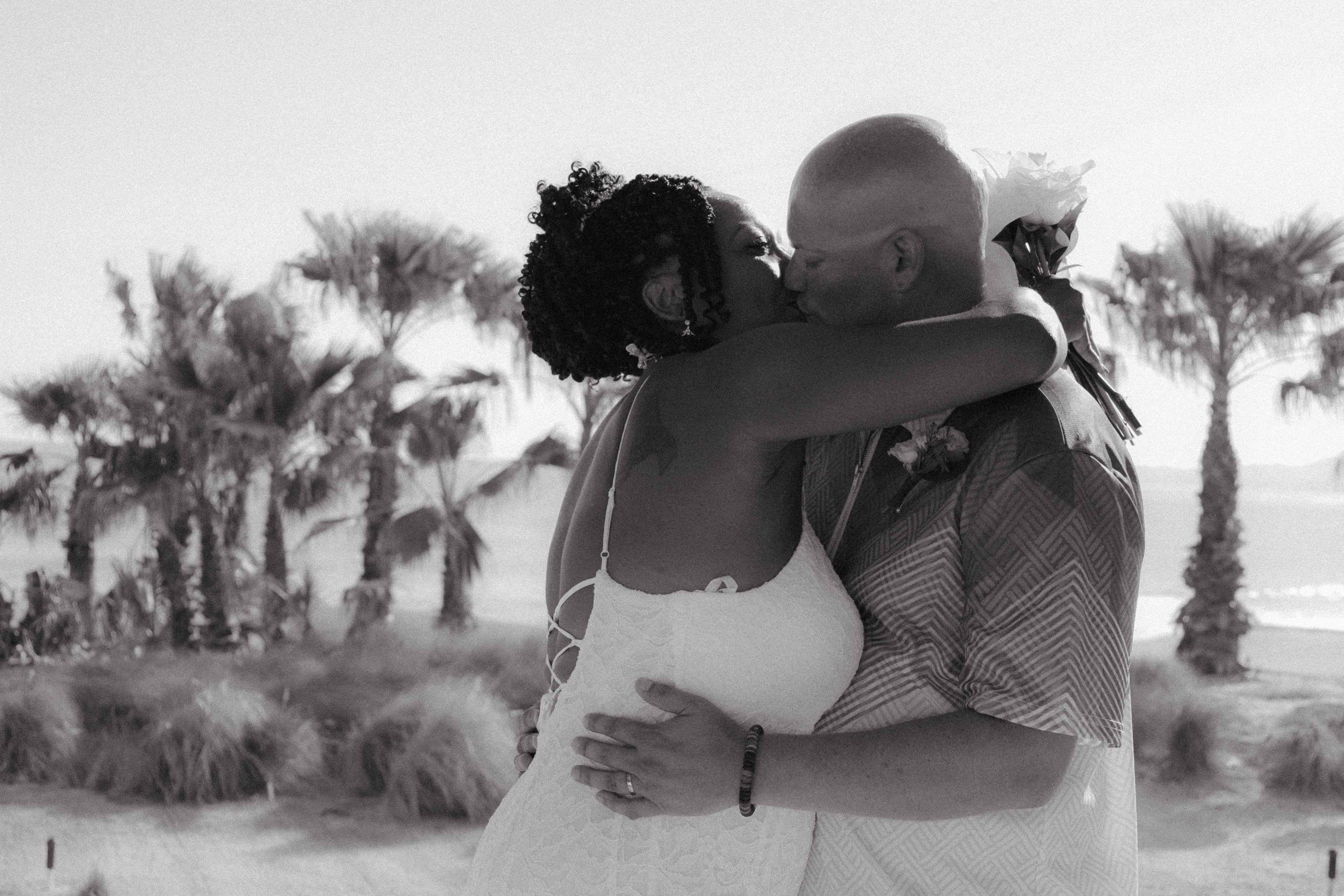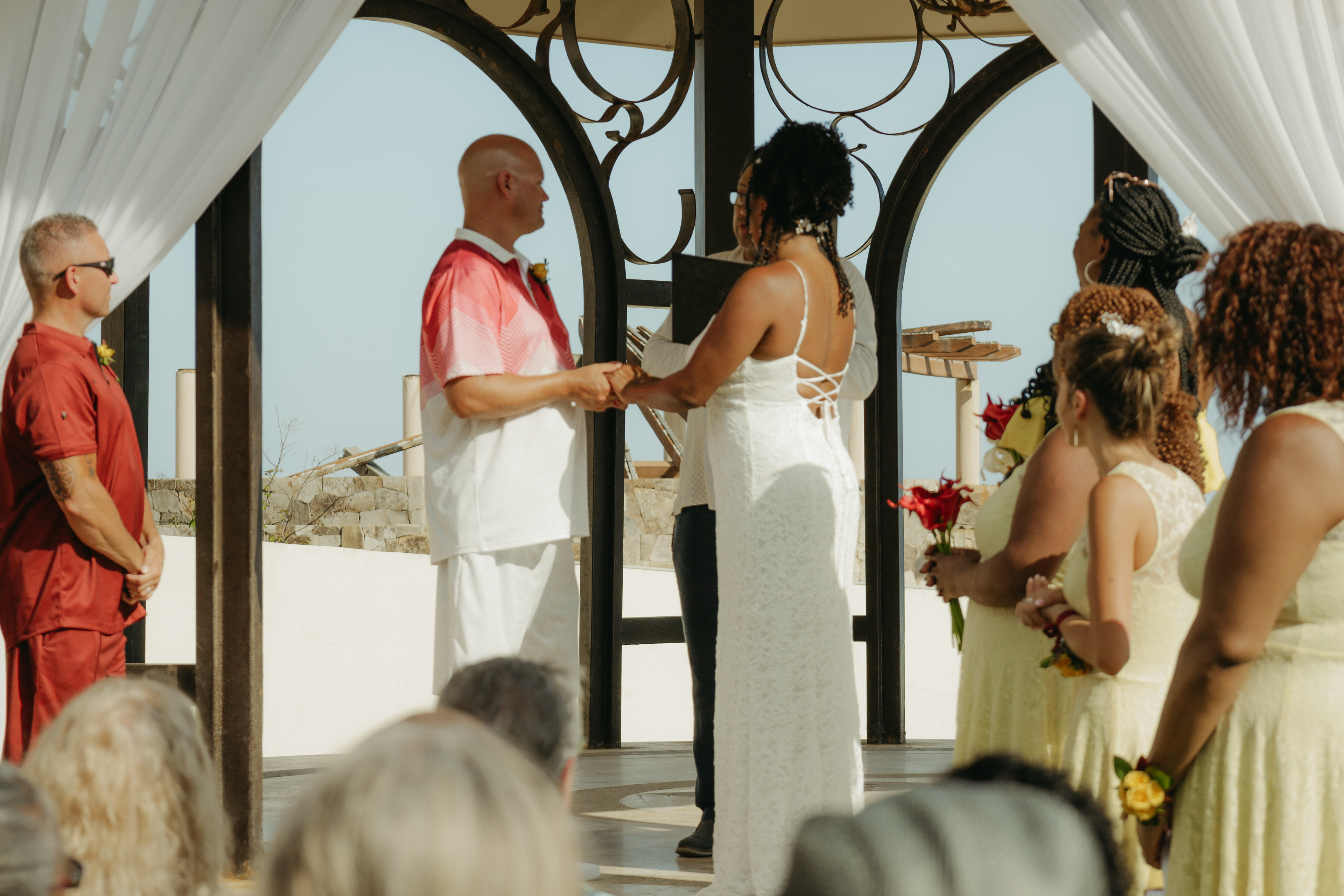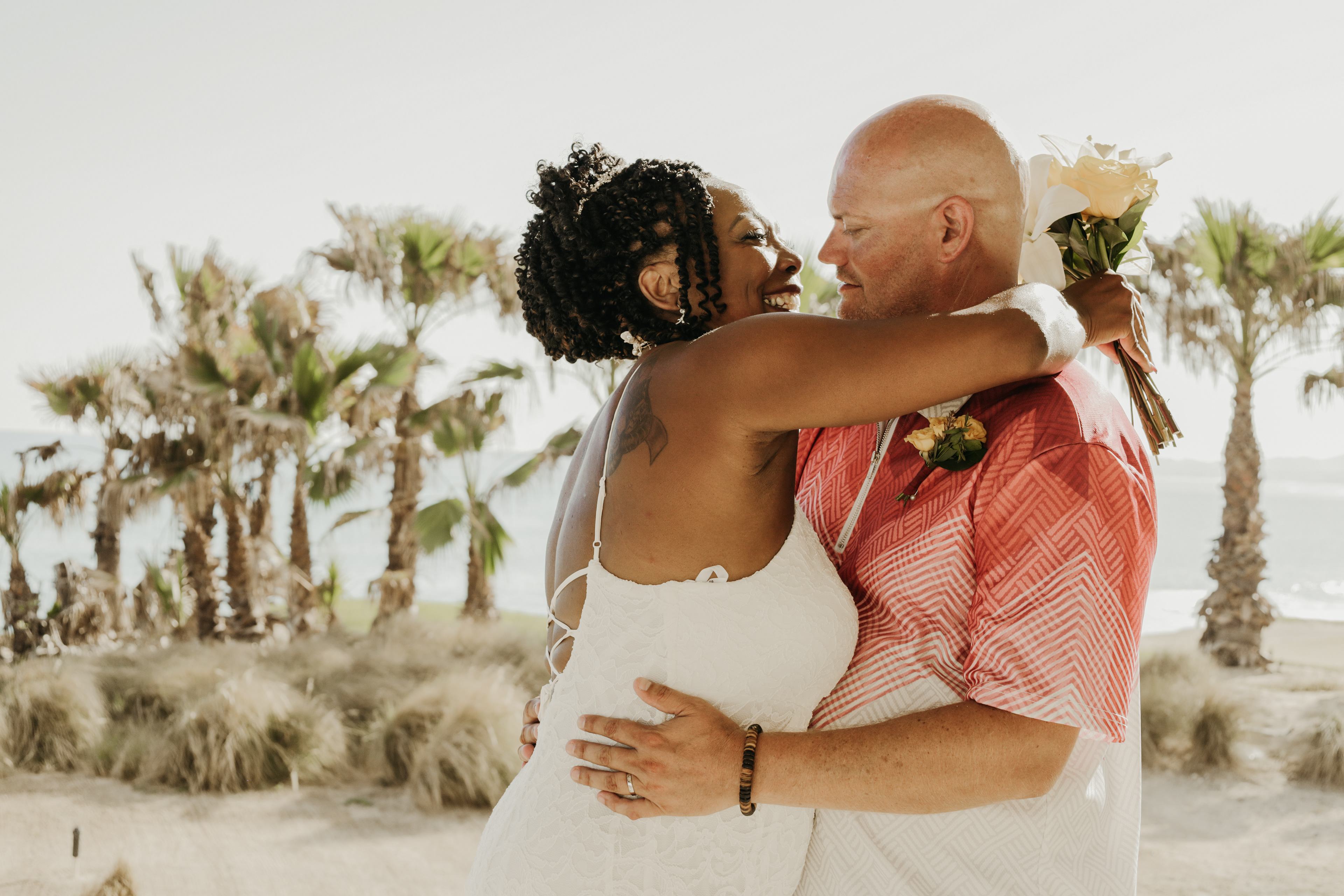Loni and Jesse had their wedding on the east coast of Los Cabos. In a beautiful gazebo in front of the Sea of Cortez. Where their family and friends witnessed their engagement and love on a summer afternoon. Loni wore a beautiful dress with a nice back neckline, while Jesse was dressed in a fresh and very original suit. All the preparation took place at the Secrets Puerto Los Cabos resort.