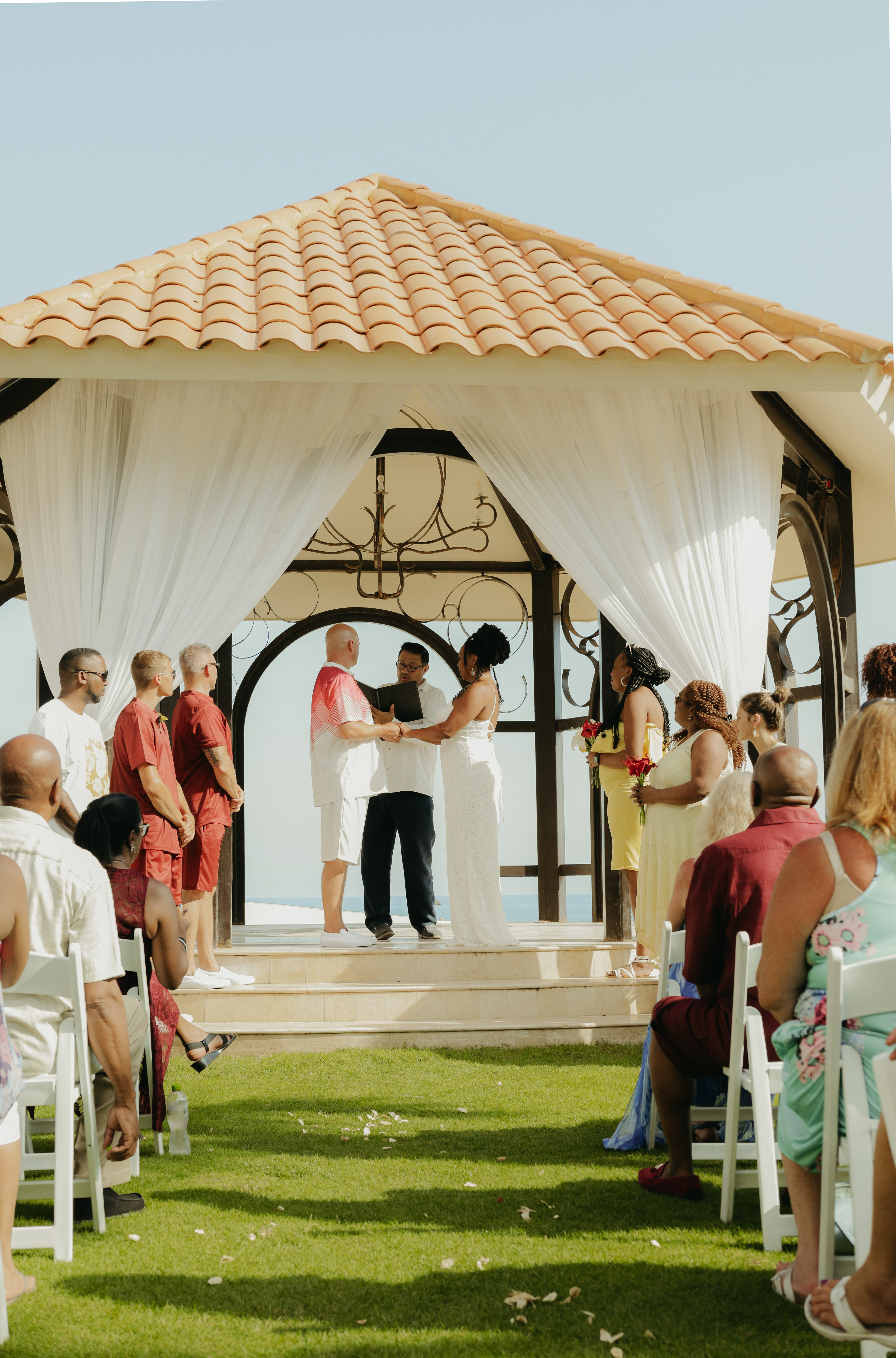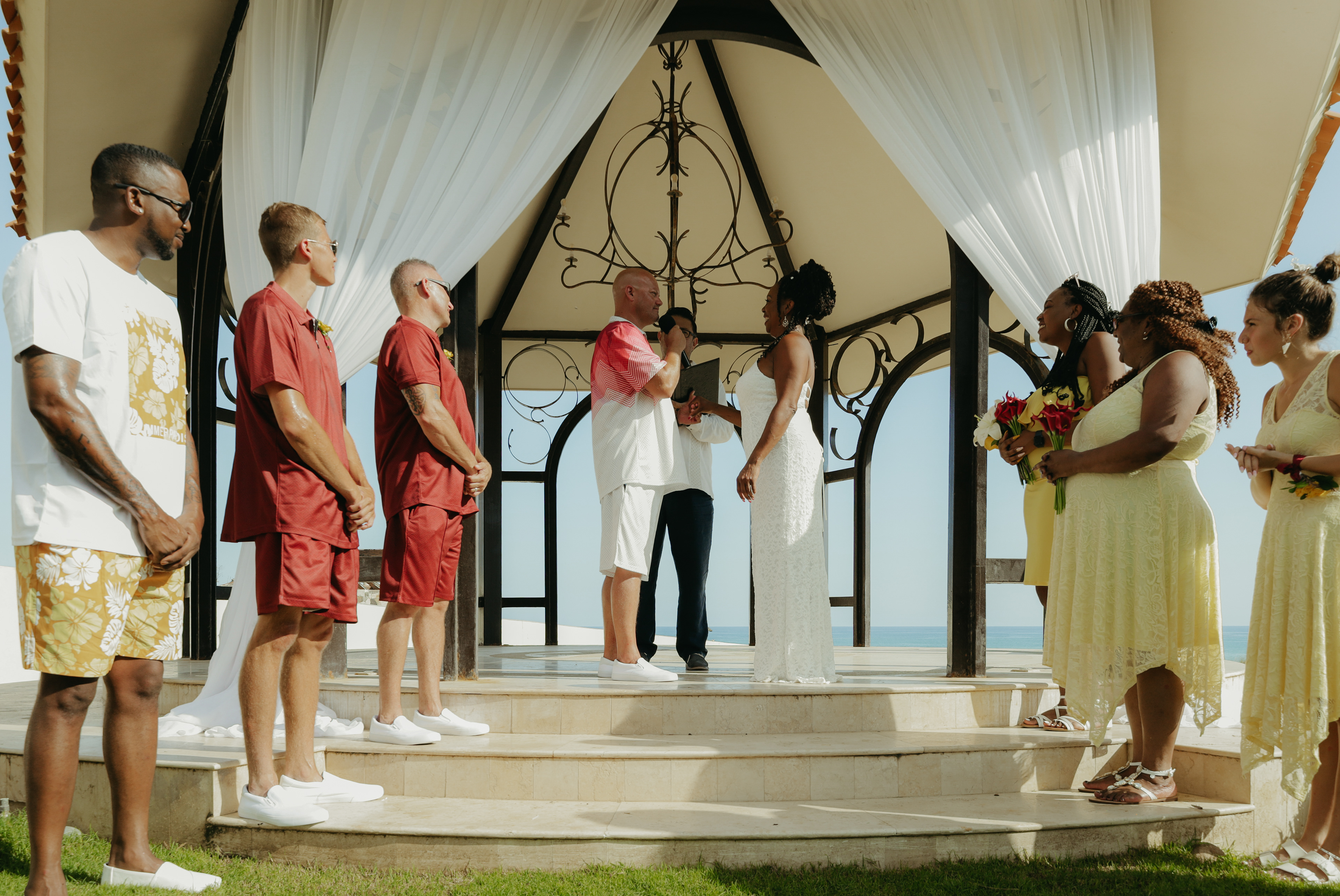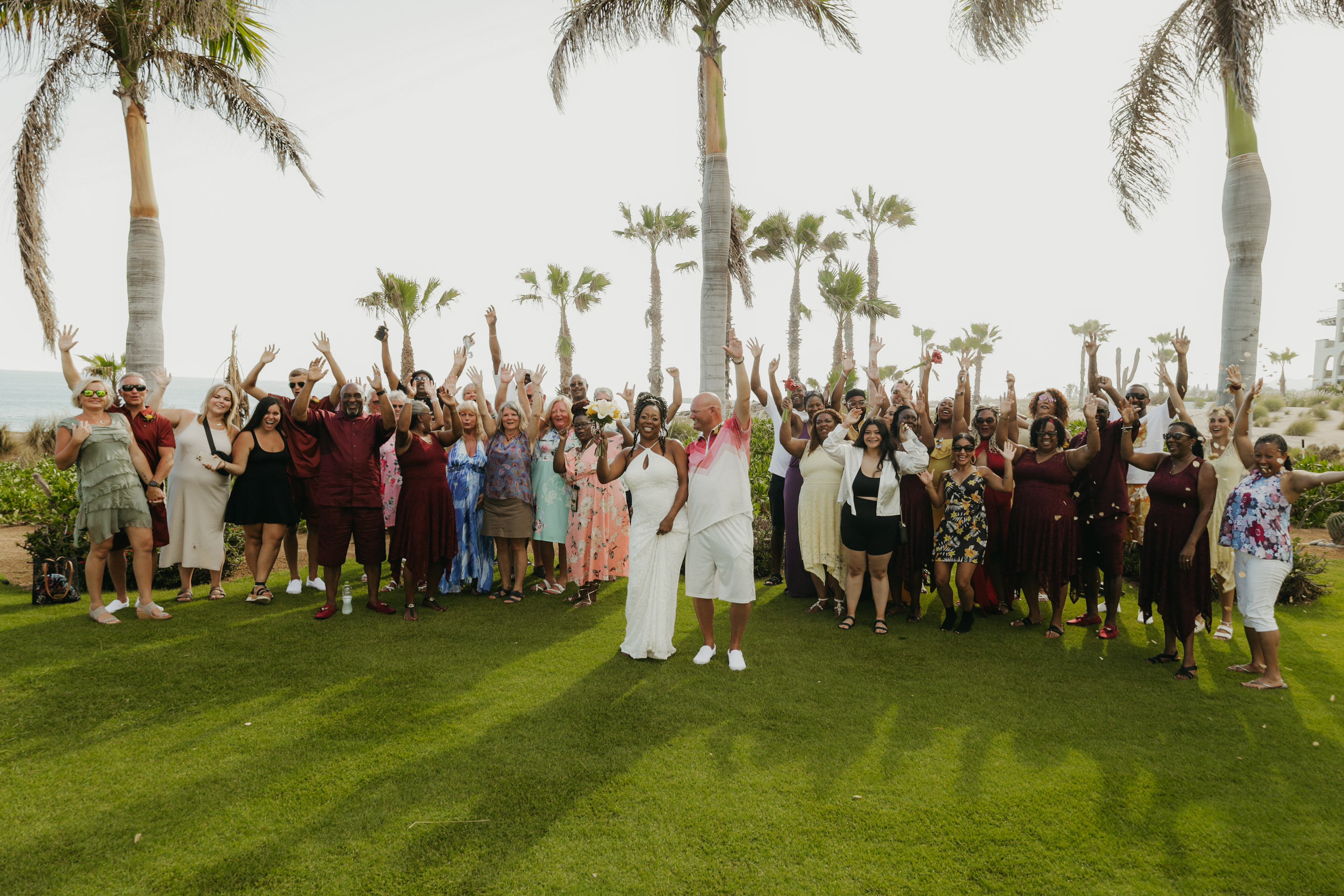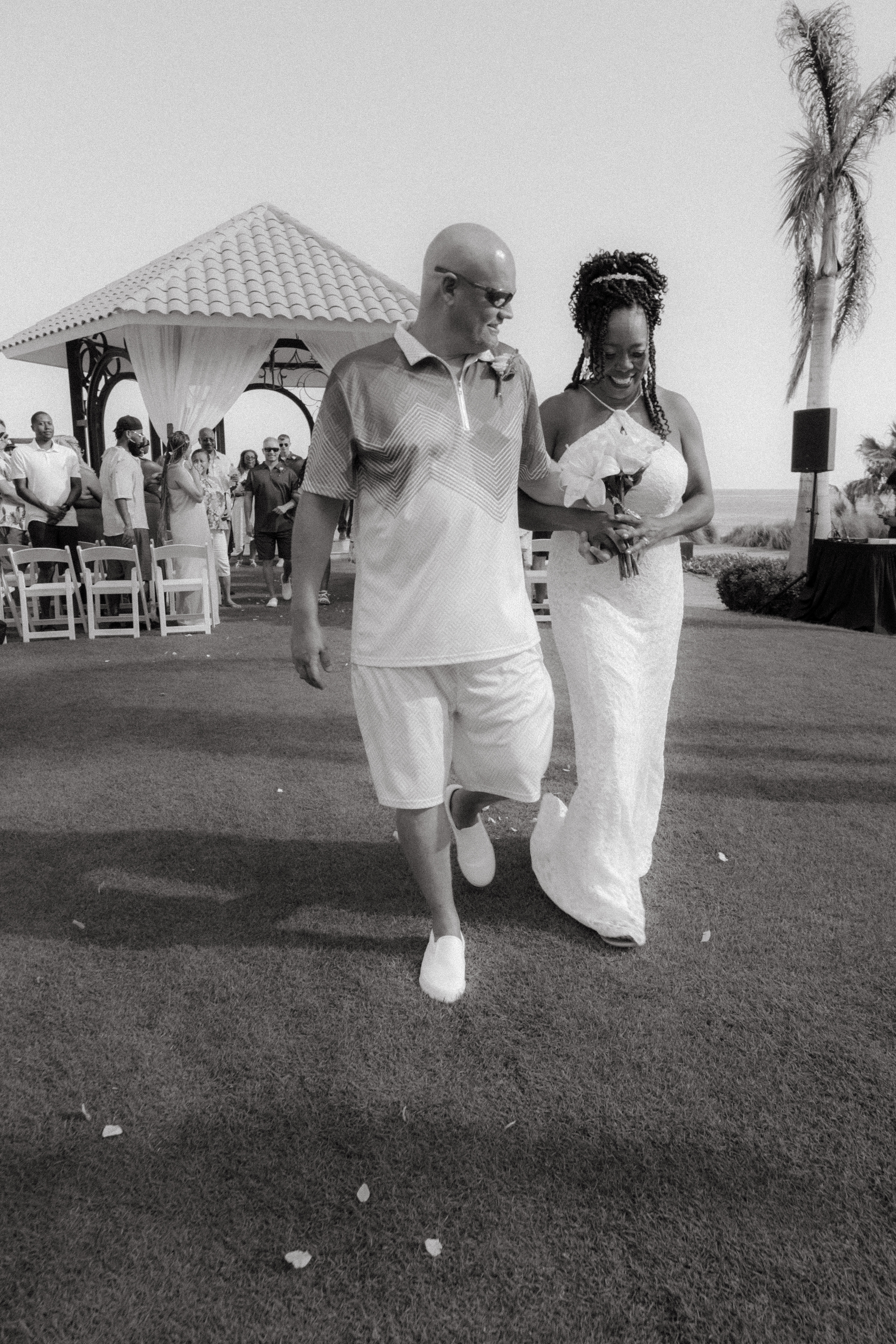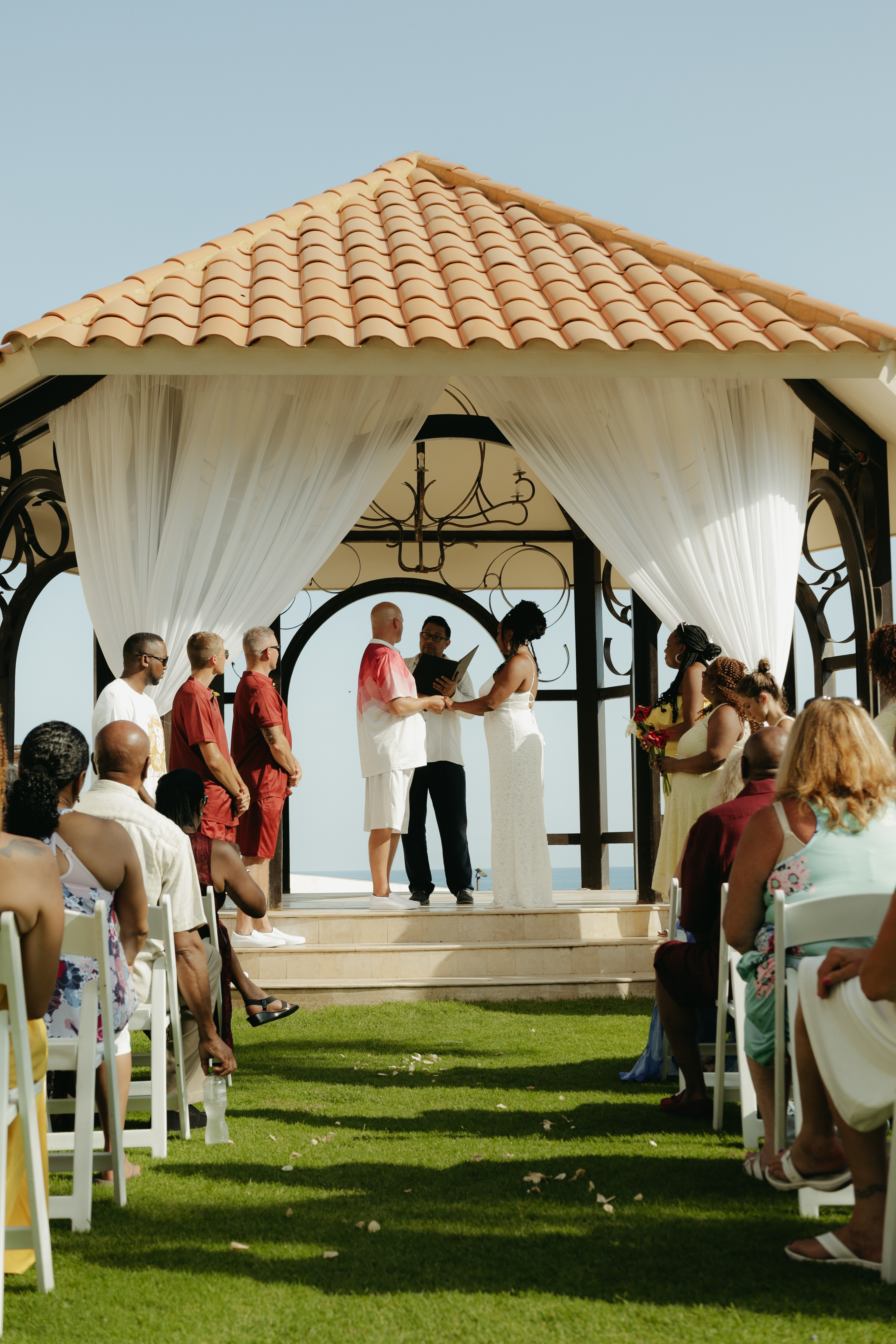 Loni and Jesse had their wedding on the east coast of Los Cabos. In a beautiful gazebo in front of the Sea of Cortez. Where their family and friends witnessed their engagement and love on a summer afternoon. Loni wore a beautiful dress with a nice back neckline, while Jesse was dressed in a fresh and very original suit. All the preparation took place at the Secrets Puerto Los Cabos resort.