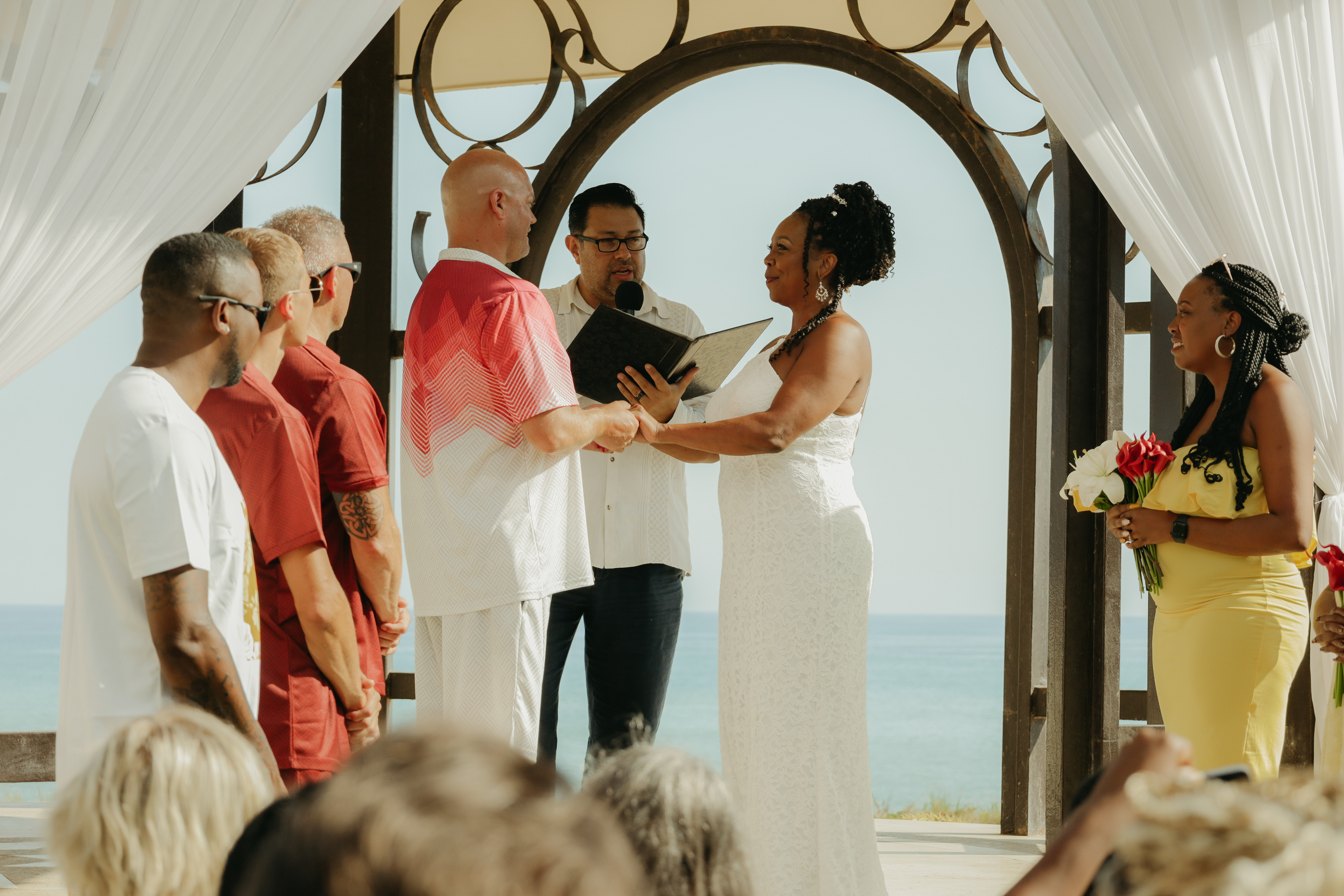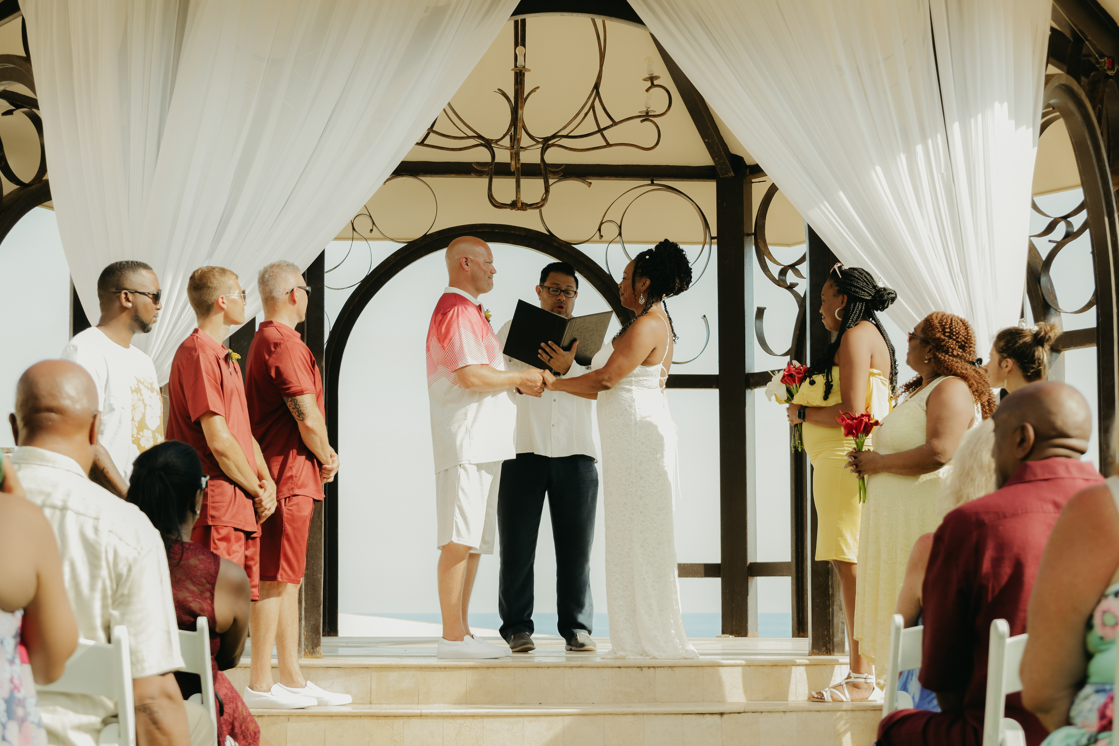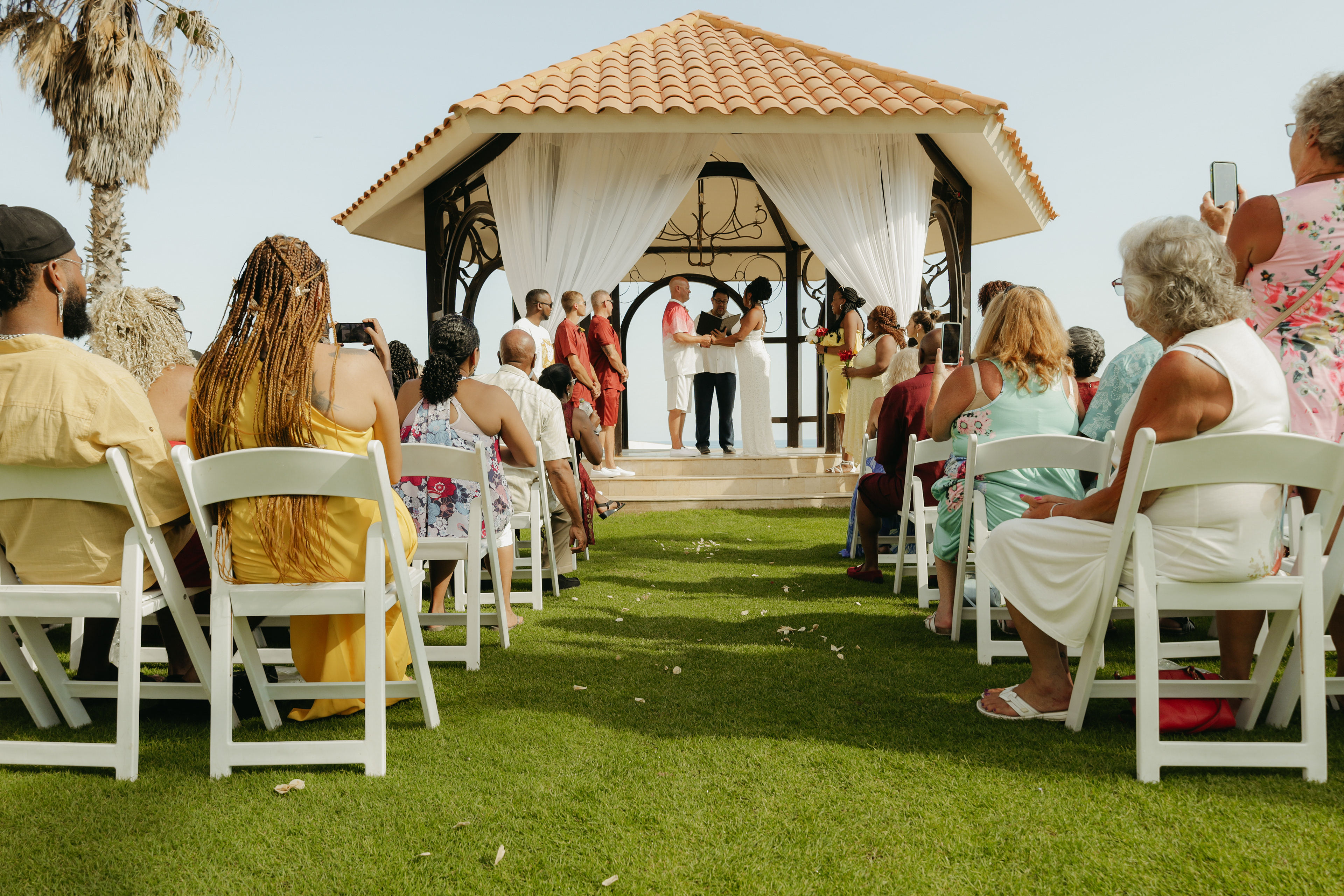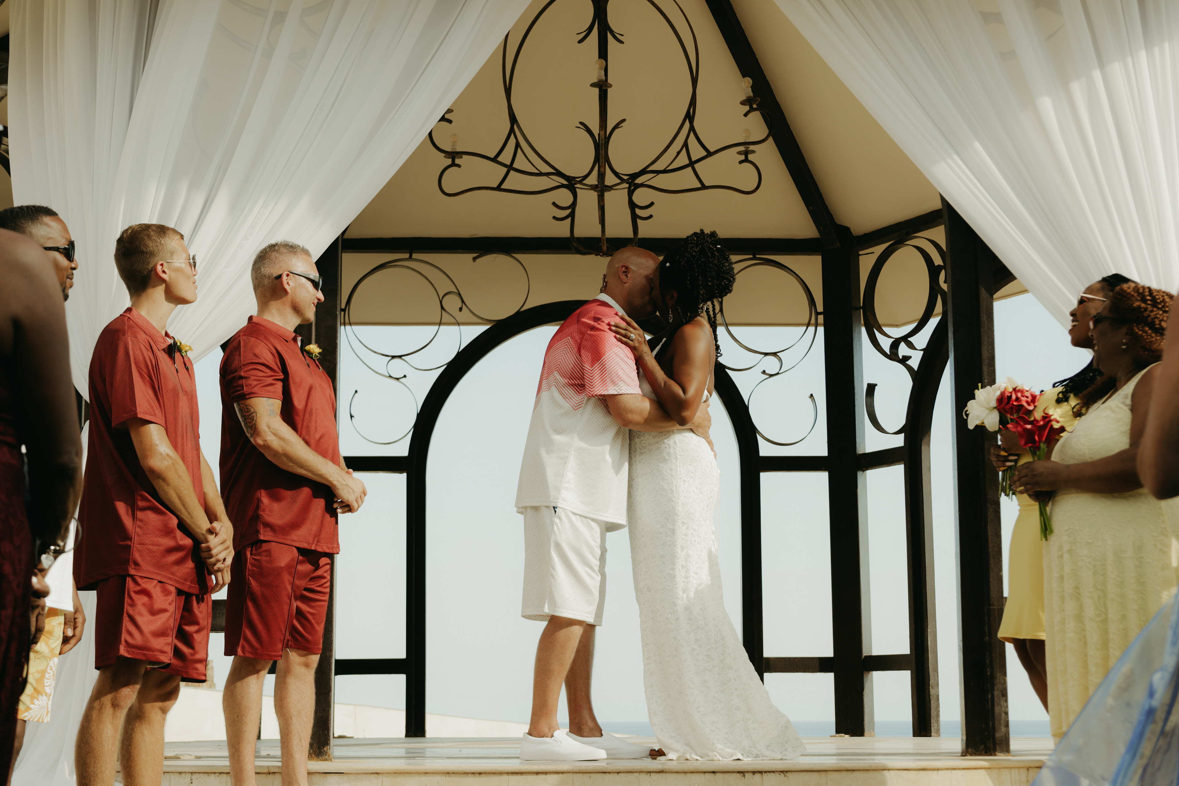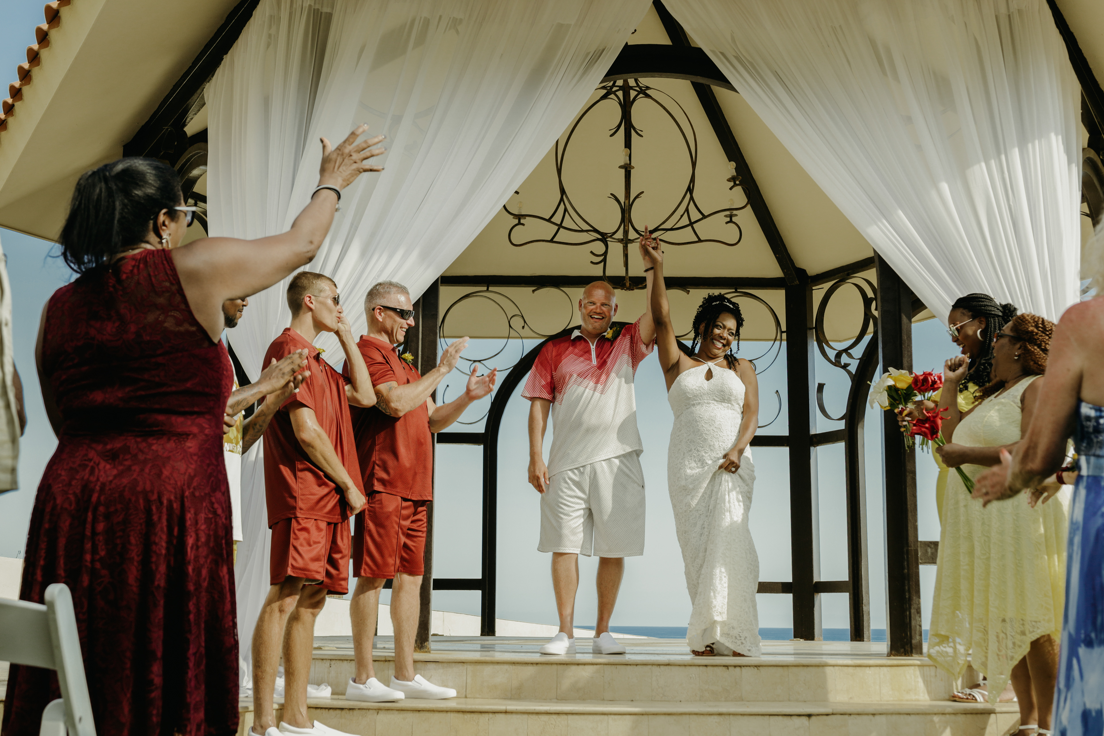 Loni and Jesse had their wedding on the east coast of Los Cabos. In a beautiful gazebo in front of the Sea of Cortez. Where their family and friends witnessed their engagement and love on a summer afternoon. Loni wore a beautiful dress with a nice back neckline, while Jesse was dressed in a fresh and very original suit. All the preparation took place at the Secrets Puerto Los Cabos resort.